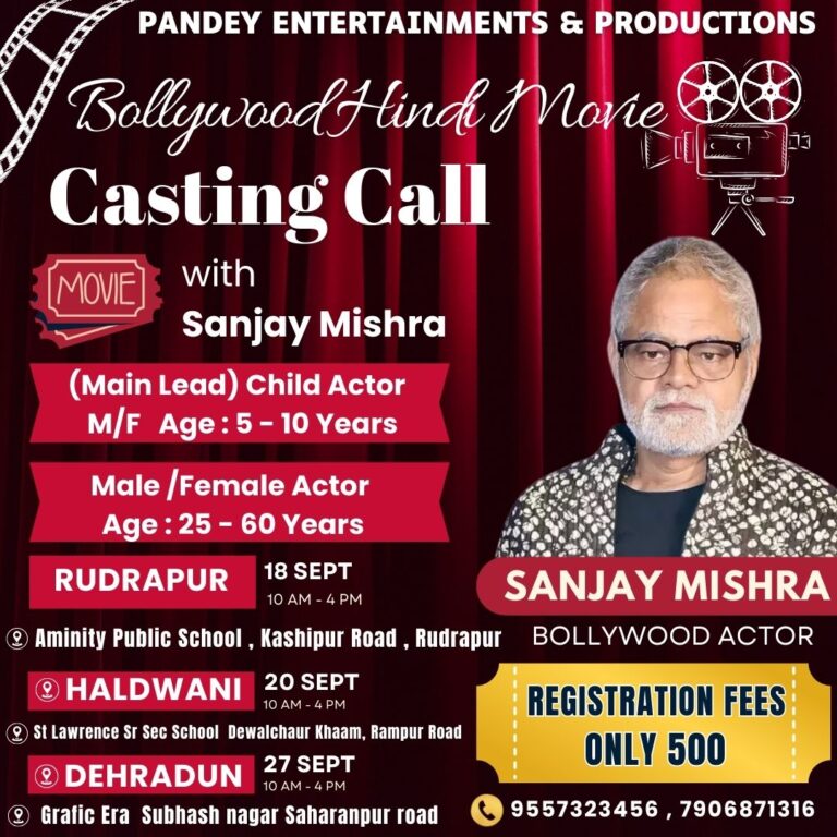 सभी जगहों पर ऑडिशन सुबह 10 बजे से शाम 4 बजे तक होंगे। यह स्थानीय प्रतिभाओं के लिए एक बड़ा अवसर है। #Auditions2025 #RudrapurAuditions #HaldwaniAuditions #DehradunAuditions #CastingCall